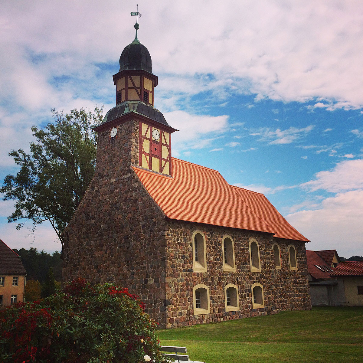 Am späten Nachmittag erreichen wir unser heutiges Tagesziel: das Familienhotel Brandtsheide direkt am See von Jeserig. Ein 3-Sterne-Hotel mit alpinem Charakter in dem Öko-Bio-Landwirtschaft groß geschrieben wird. Direkt auf der Wiese davor grasen englische Hereford-Rinder, deren Fleisch im Restaurant gern probiert werden darf. Auch die hauseigene Sülze schaffte es schon zu Fernsehruhm und ist durchaus eine Empfehlung. Saunalandschaft und moderne Zimmer laden zur Erholung ein und stimmen traurig, dass wir nur eine Nacht hier bleiben. Lediglich das Einzelzimmer hinter der Küche, in welchem Ines mit ihrer Hündin nächtigt, sollte man tunlichst meiden. Vom Lärm einmal abgesehen ist es schmal und klein und taugt eher zur Vorratskammer als zur Nachtruhe. Nichtsdestotrotz: insgesamt verbringen wir eine erholsame Nacht.