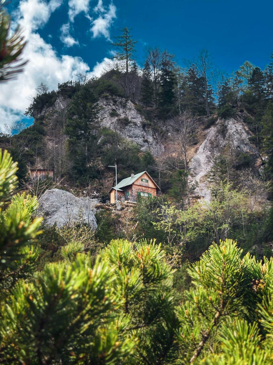 Ausgeruht und wieder bei Kräften wage ich mich an den Abstieg, der abwechselnd durch krüppelig gewachsene Wacholdersträuche führt, die sich unter Felsvorsprüngen ducken, und durch kleine Gruppen von Latschenkiefern, die gerade jetzt im Frühling intensiv nach Badezusatz duften. Auch wenn es zuweilen steil bergab geht, ist dieser Teil des Weges eine absolute Wohltat. Selten war ich so berauscht von aromatischen Düften wie in diesem Moment. Als ich schließlich am kleinen Wasserfall des Haindlkarbaches vorbeikomme, ist es endgültig um mich geschehen. Obwohl ich erst seit zwei Tagen vor Ort bin, habe ich mich augenblicklich in das Gesäuse verliebt.