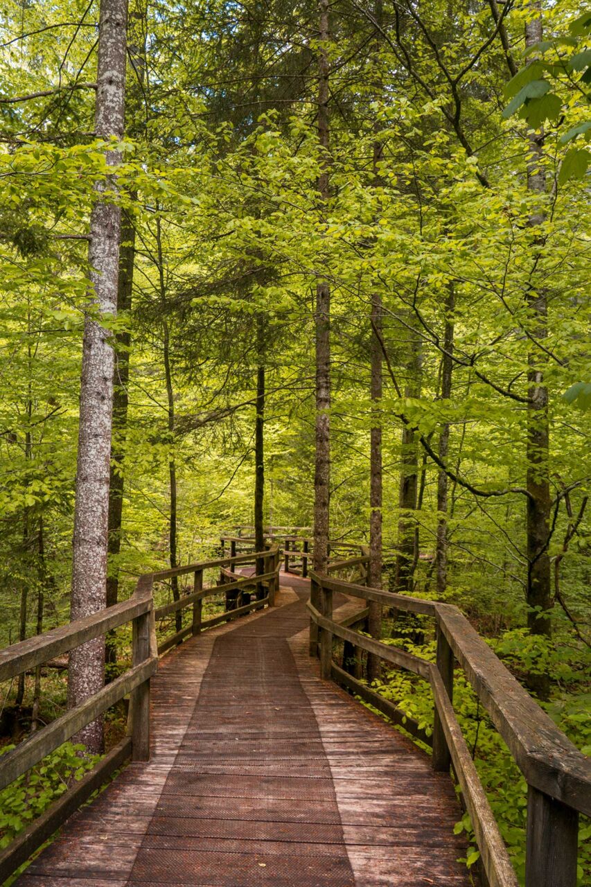 Am Ende des Weges, der mich zu meinem Ausgangspunkt zurückbringt, nutze ich das warme Tageslicht des Nachmittags und laufe noch zum Johnsbachsteg. Das ist eine recht imposante Holzbrücke über die Enns, die einen ganz anderen Eindruck von Fluss und Gebirge ermöglicht. Eigentlich wollte ich mir auch den Weidendom anschauen, aber leider ist dieses idyllische Plätzchen geschlossen und wird wohl gerade für die neue Saison hergerichtet.