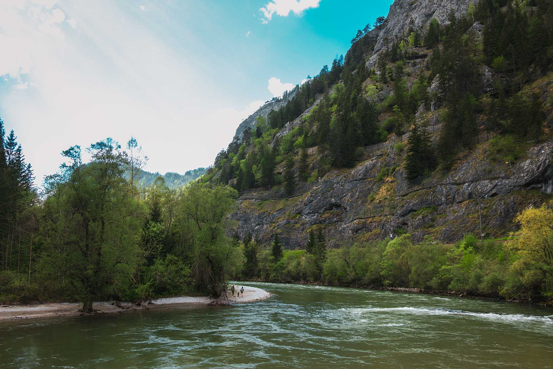 Das Wasser glitzert smaragdgrün in der Sonne und aufschäumende Kronen tanzen darauf wie beim Ballett. Leise säuselt nicht nur der Fluss, sondern auch ein sanfter Wind. Gepaart mit dem Frühlingsgezwitscher der Vögel ist dieser Moment einfach nur Glück pur. Am Rastplatz an der Enns mache ich Halt und lasse diese imposante Gegend auf mich wirken. Dass ich verliebt bin, hatte ich bereits erwähnt, oder?