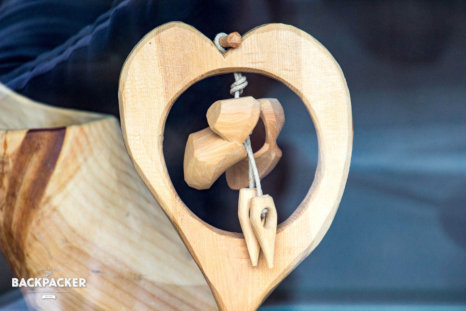 Im Ayastal, unweit des kleinen Örtchens Champoluc, liegt die noch kleinere Ortschaft Antagnod. An der Hauptstraße, unauffällig hinter einem Rundbogen versteckt, fällt ein kleiner Laden, der mit seinem verspielten Schaufenster zum Bummeln einlädt, besonders auf. „Les Sabots d’Ayas“ steht dort in großen Lettern geschrieben und macht mich neugierig. Sabots, diesen Begriff habe ich in den letzten Tagen schon häufiger gehört. Damit gemeint sind die traditionell hergestellten Holzschuhe, den niederländischen Klompen nicht ganz unähnlich.
