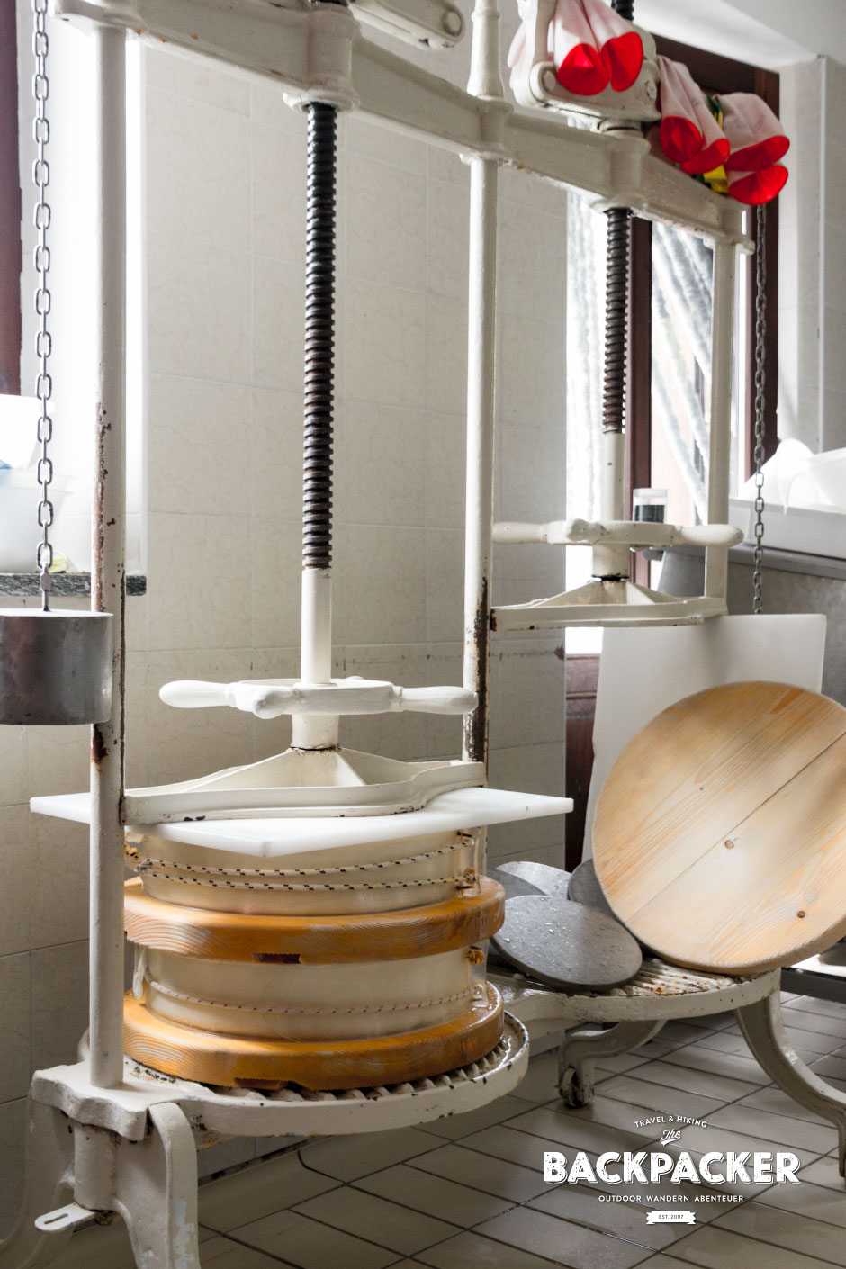Die knapp 35 Kühe stehen fast das ganze Jahr auf den umliegenden Wiesen und bekommen somit nur beste Weidekräuter zu fressen. Selbst im Winter haben sie die Möglichkeit, der Enge des Stalls zu entfliehen. Auf industriell gefertigte Zusatznahrung wird verzichtet, genauso wie auf die Gabe von Antibiotika oder anderen Medikamenten. Jeden Morgen werden die Kühe gemolken, auch am Wochenende. Noch warm kommt die Milch direkt in die Molkerei und wird begonnen, daraus den leckersten Käse herzustellen. Mehr als Bio also. Und das schmeckt man auch.