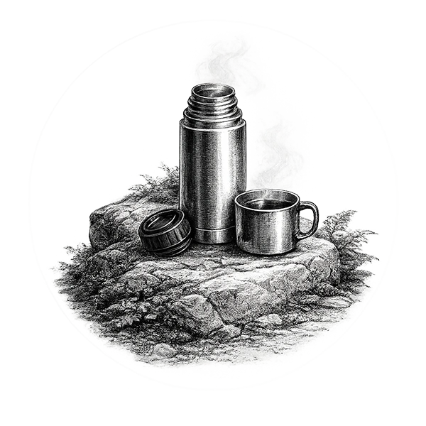Im Winter verdunstet man über den Atem mehr Feuchtigkeit, als man gemeinhin glaubt. Daher habe ich neben einer Isolierkanne* mit Tee auch immer eine kleine Flasche Wasser dabei. Diese sollte möglichst körpernah im Rucksack verstaut werden, da das Wasser darin sonst auf der Wanderung sehr kalt wird.